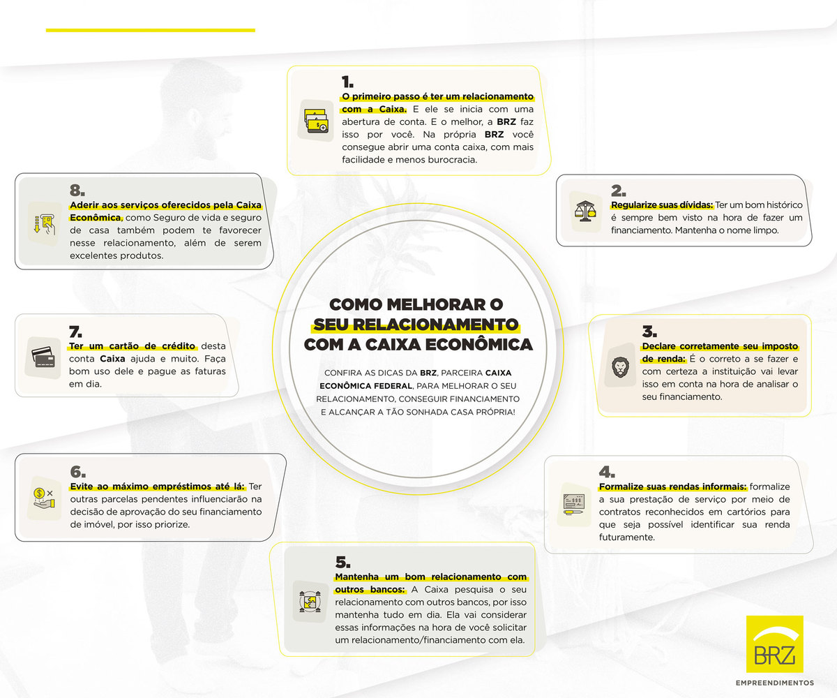 Para entender melhor como você pode aprimorar o seu relacionamento com a Caixa, fizemos um infográfico, prático e visual para que você compreenda as etapas a serem seguidas.